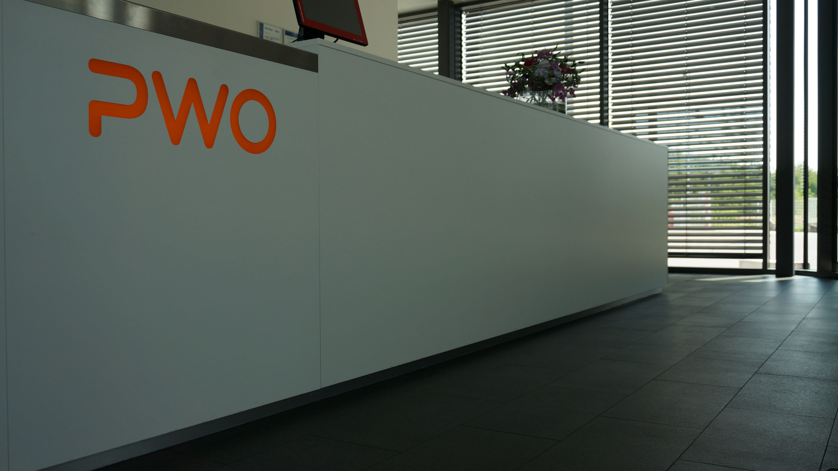 Neubau der Pforte für die Firma PWO AG in Oberkirch mit großzügiger Empfangstheke und Wartebereich für Kunden